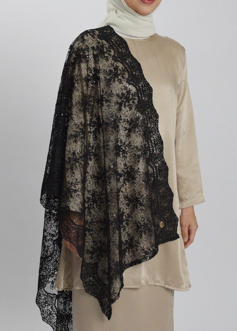 Sinaran Selendang Premium Scarves In Black